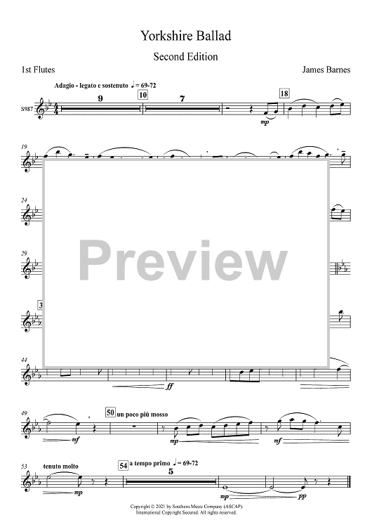 "Yorkshire Ballad for Band, 2nd Edition - Flute 1" Sheet Music by James Barnes