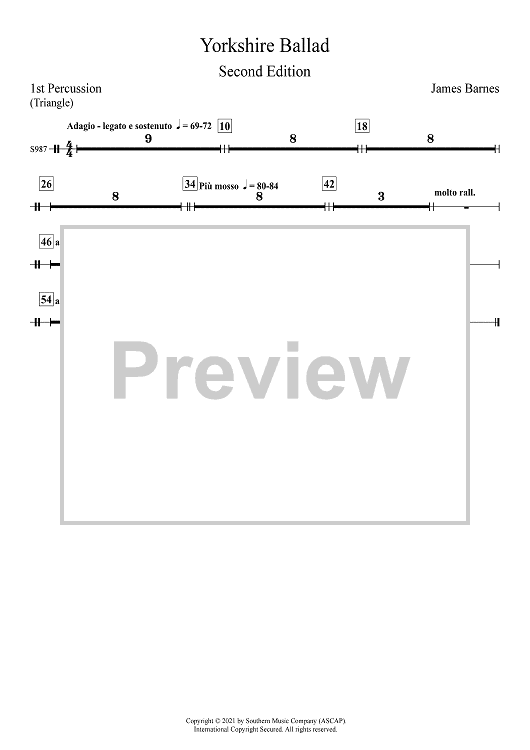 Digital Sheet Music for Yorkshire Ballad for Band, 2nd Edition - Percussion 1 by James Barnes scored for Concert Band; id:503274