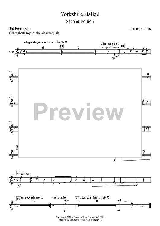 "Yorkshire Ballad for Band, 2nd Edition - Percussion 3" Sheet Music by James Barnes