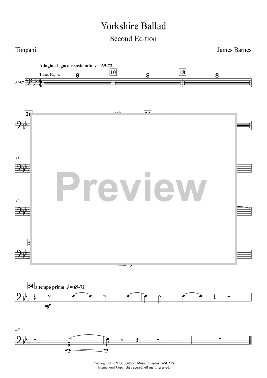"Yorkshire Ballad for Band, 2nd Edition - Timpani" Sheet Music by James Barnes