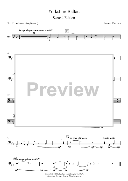 Digital Sheet Music for Yorkshire Ballad for Band, 2nd Edition - Trombone 3 (opt.) by James Barnes scored for Concert Band; id:503269