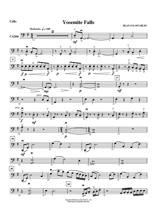 "Yosemite Falls - Cello" Sheet Music by Sean O'Loughlin