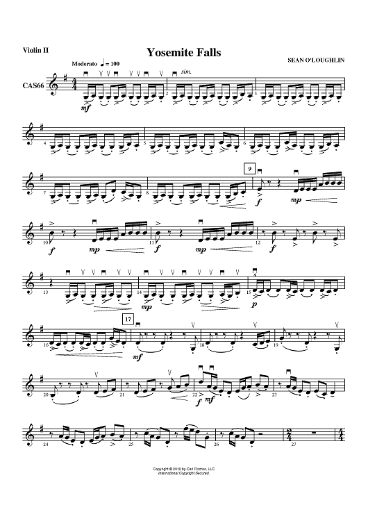 "Yosemite Falls - Violin 2" Sheet Music by Sean O'Loughlin