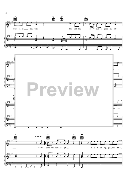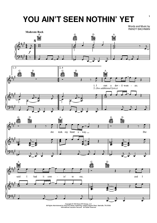 Digital Sheet Music for You Ain't Seen Nothin' Yet by Randy Bachman, Bachman-Turner Overdrive scored for Piano/Vocal/Chords; id:384239