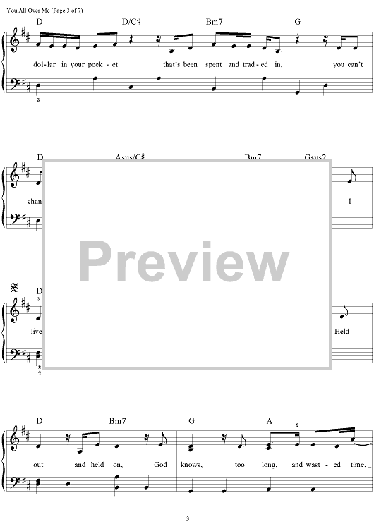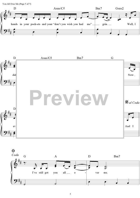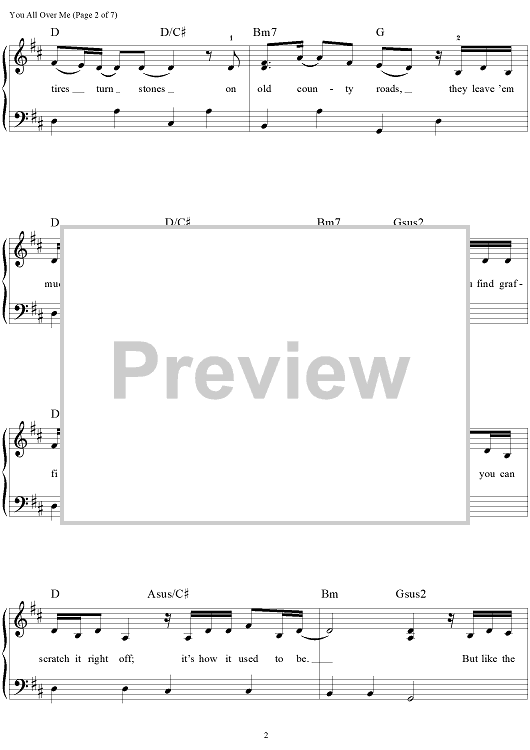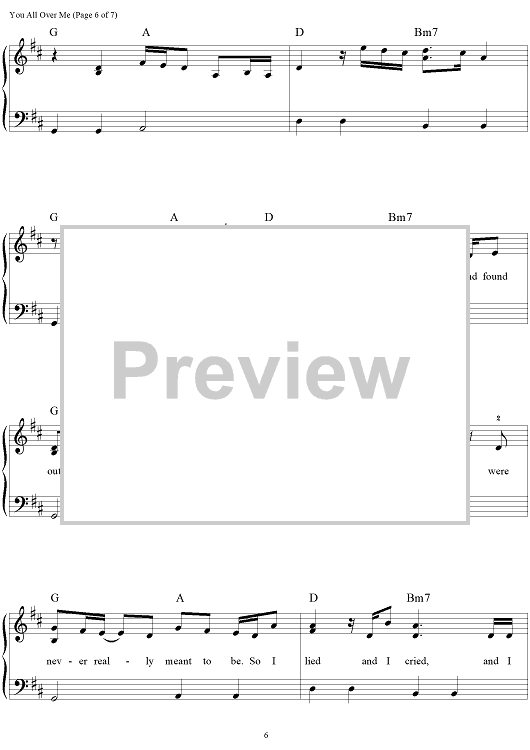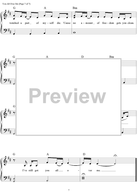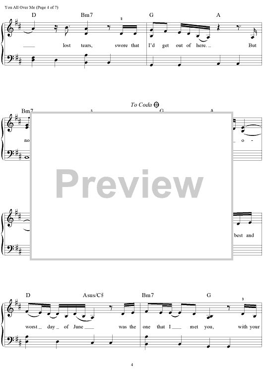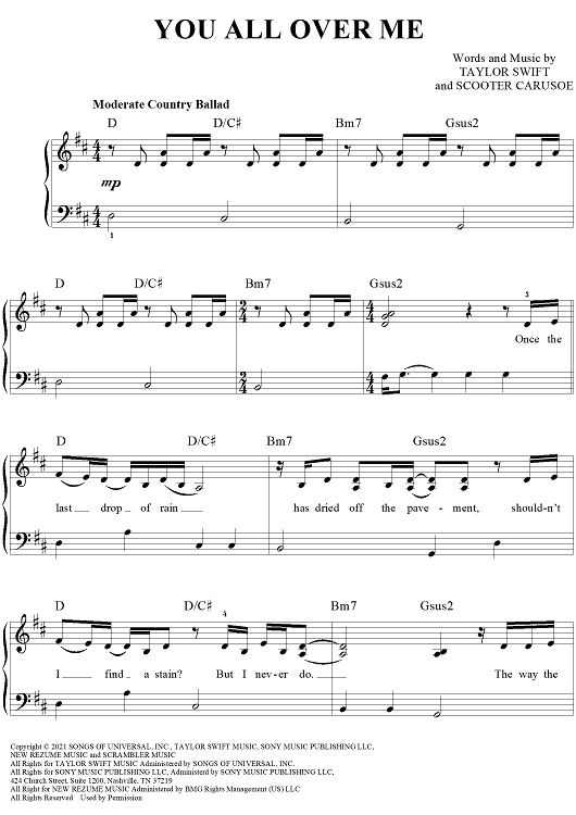 Digital Sheet Music for You All Over Me by Scooter Carusoe, Taylor Swift scored for Easy Piano/Vocal/Chords; id:469159