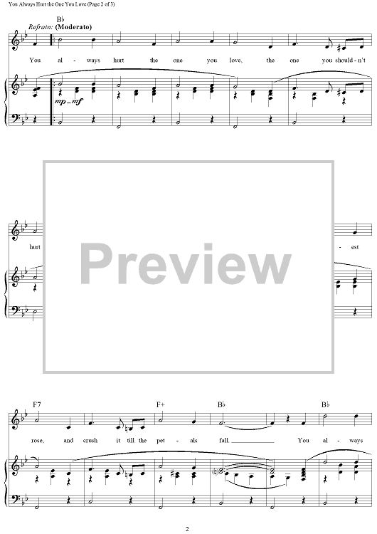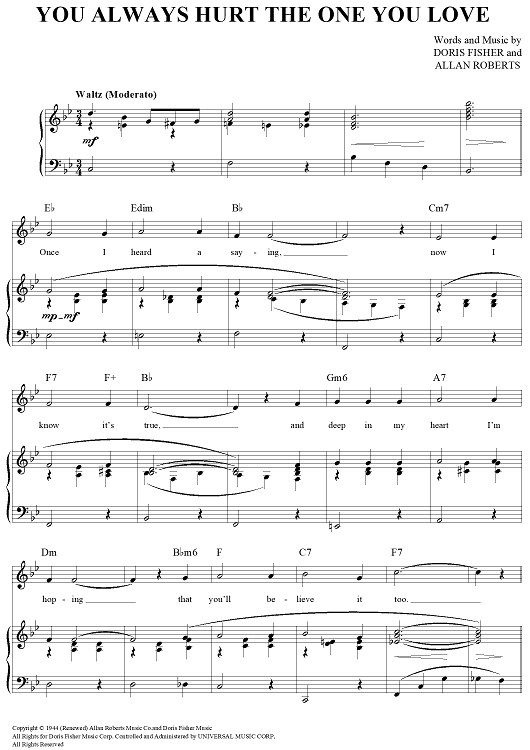 Digital Sheet Music for You Always Hurt the One You Love by Allan Roberts, Doris Fisher scored for Piano/Vocal/Chords; id:289715