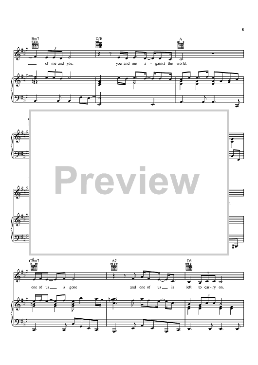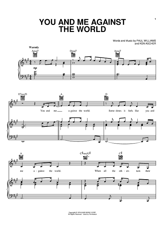 Digital Sheet Music for You And Me Against The World by Helen Reddy, Paul Williams, Kenneth Ascher scored for Piano/Vocal/Chords; id:367462