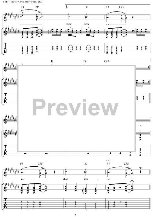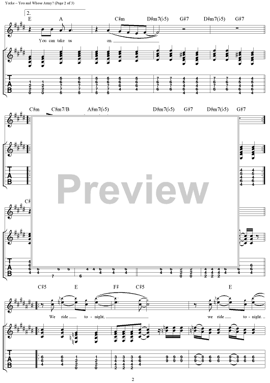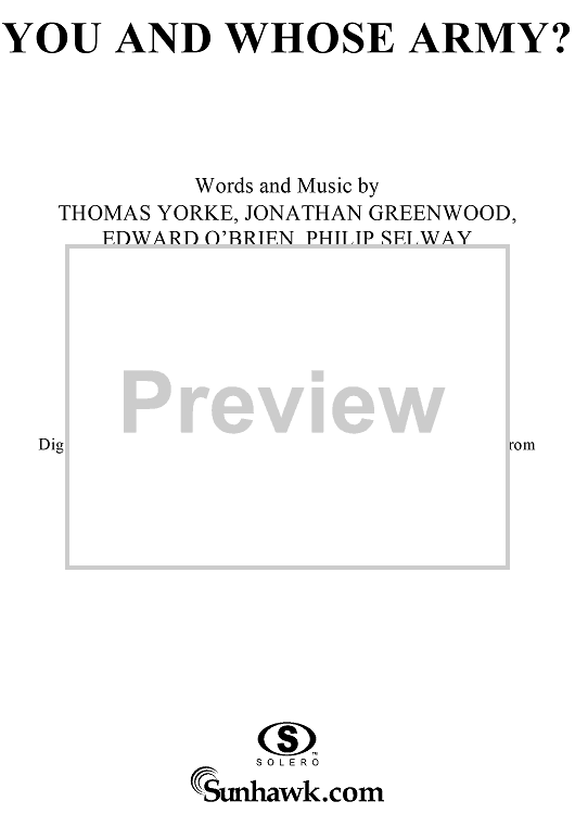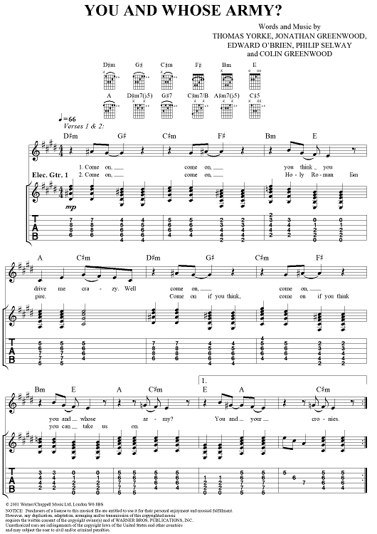 Digital Sheet Music for You and Whose Army? by Thomas Yorke, Jonathan Greenwood, Philip Selway, Coz, Edward O'Brien, Radiohead scored for Guitar Tab/Vocal; id:290130