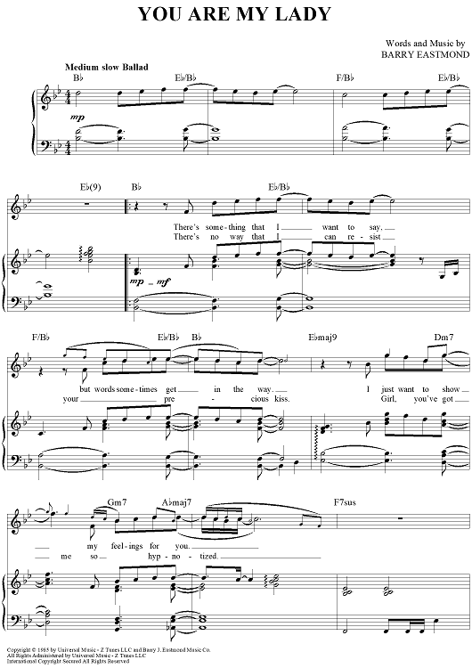Digital Sheet Music for You Are My Lady by Barry Eastmond, Freddie Jackson scored for Piano/Vocal/Chords; id:413146