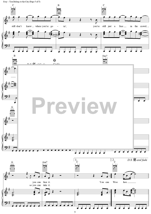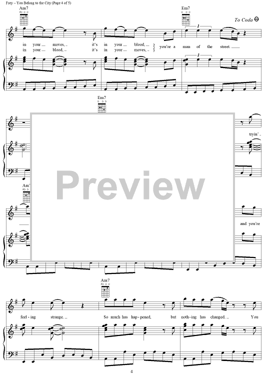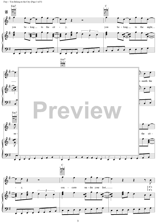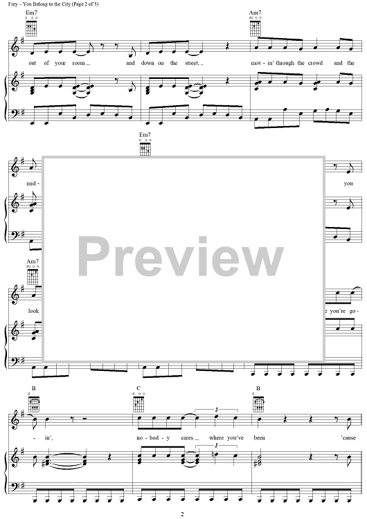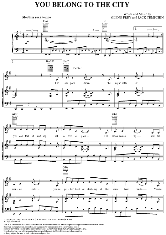 Digital Sheet Music for You Belong to the City by Jack Tempchin, Glenn Frey scored for Piano/Vocal/Chords; id:220377