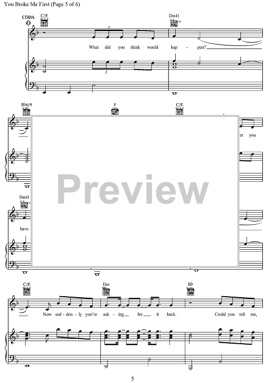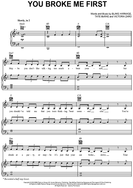 Digital Sheet Music for You Broke Me First by Tate McRae, Blake Harnage, Victoria Zaro scored for Piano/Vocal/Chords; id:468574