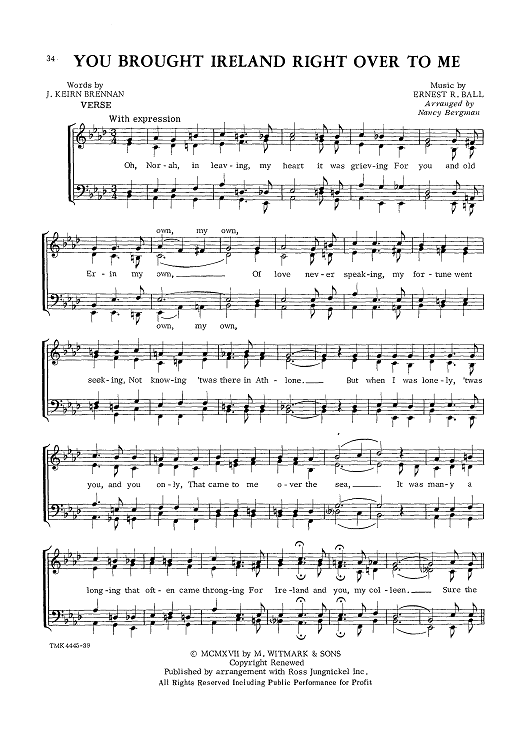 Digital Sheet Music for You Brought Ireland Right Over To Me by J. Keirn Brennan, Ernest R. Ball, Mark Bergman scored for Barbershop Quartet; id:423845