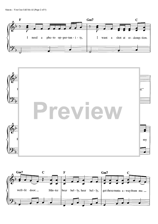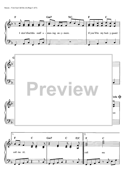 Digital Sheet Music for You Can Call Me Al by Paul Simon scored for Easy Piano/Vocal/Chords; id:445035