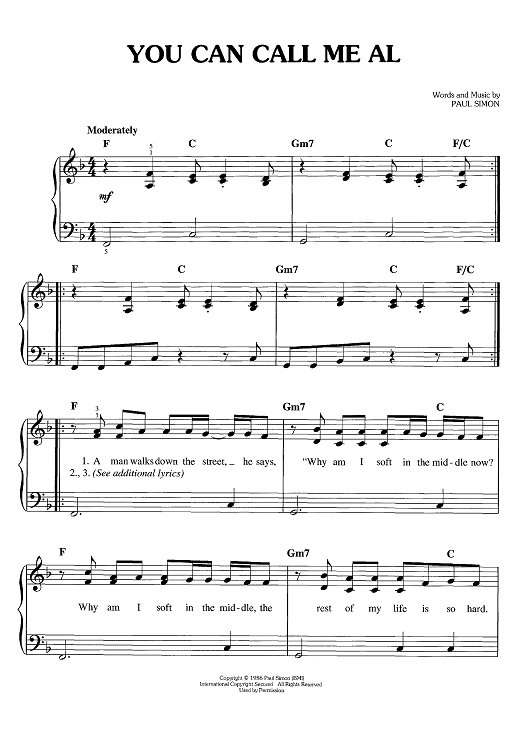 "You Can Call Me Al" Sheet Music by Paul Simon