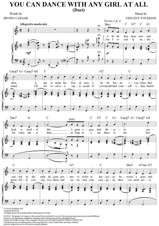 Digital Sheet Music for You Can Dance with Any Girl at All by Irving Caesar, Vincent Youmans scored for Piano/Vocal/Chords; id:355311