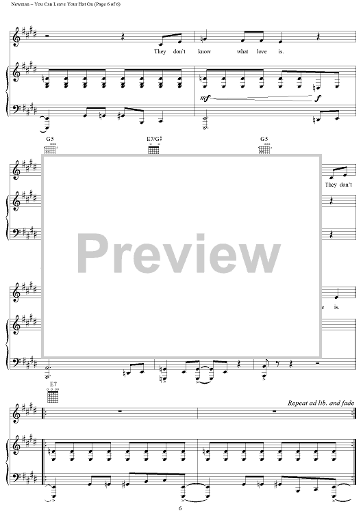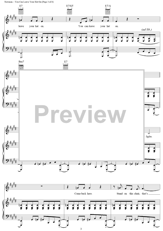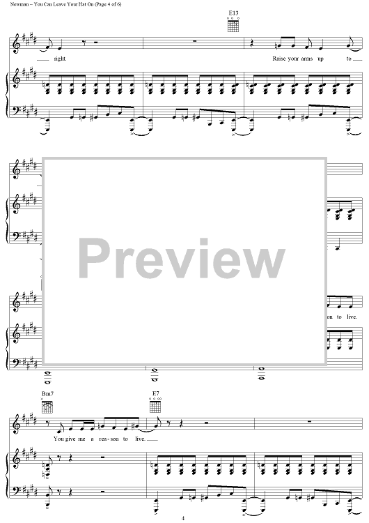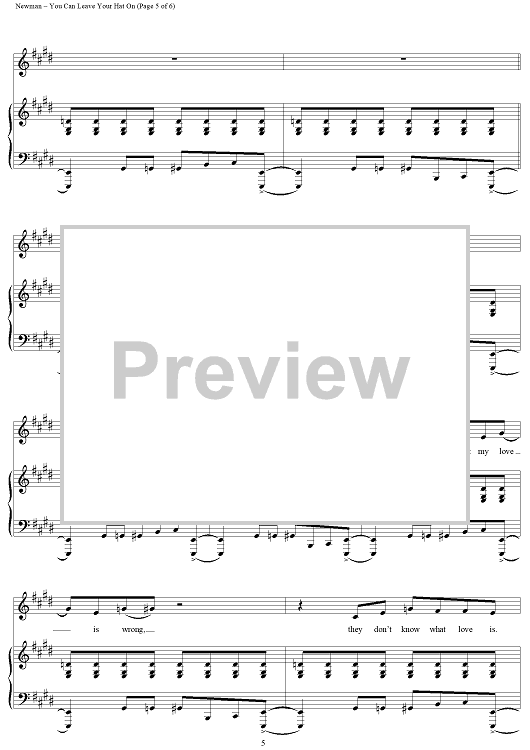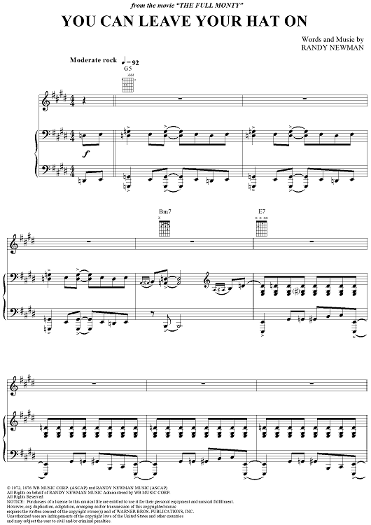 Digital Sheet Music for You Can Leave Your Hat On by Randy Newman scored for Piano/Vocal/Chords; id:112517