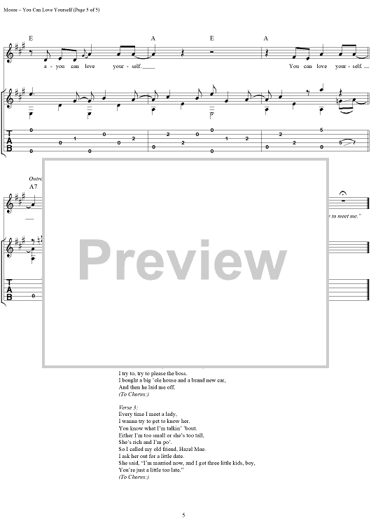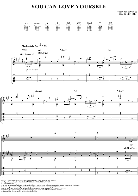 Digital Sheet Music for You Can Love Yourself by Kevin Moore, Keb' Mo' scored for Guitar Tab/Vocal; id:252810