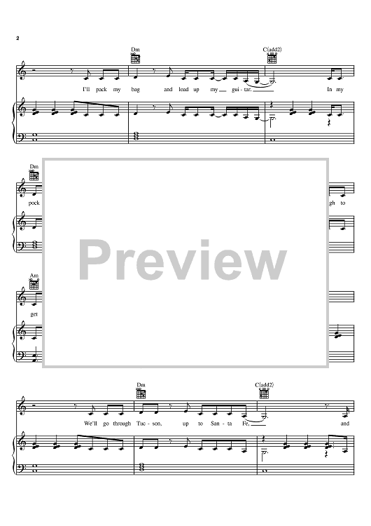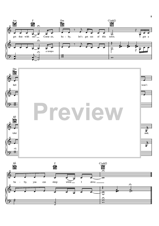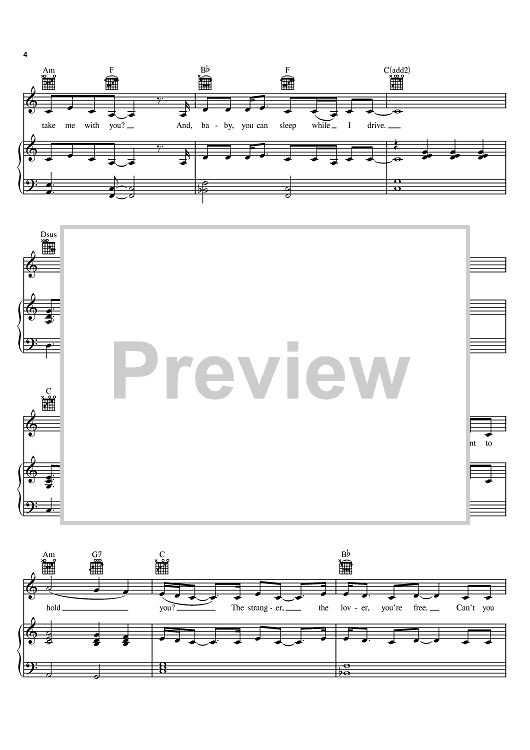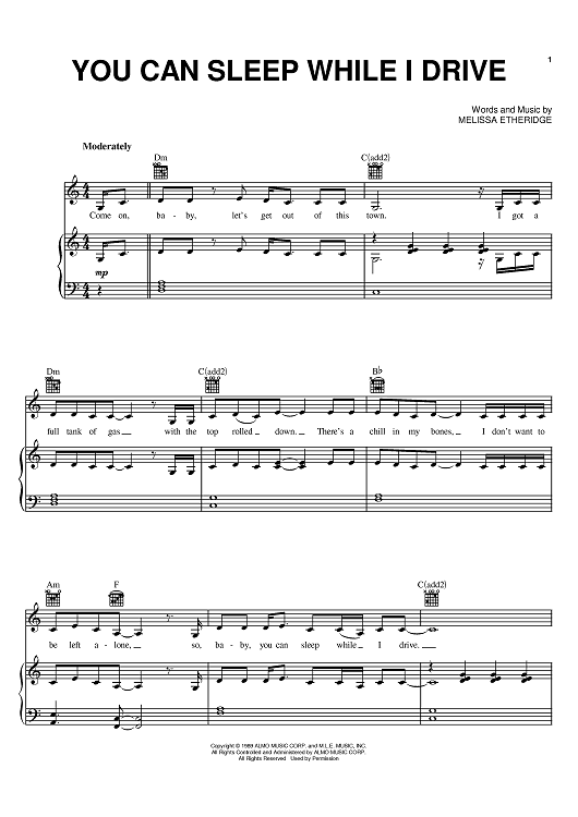 Digital Sheet Music for You Can Sleep While I Drive by Melissa Etheridge scored for Piano/Vocal/Chords; id:370820
