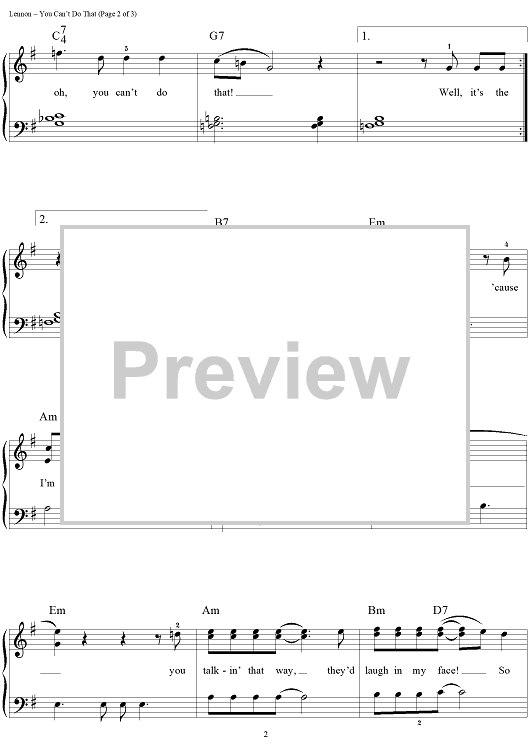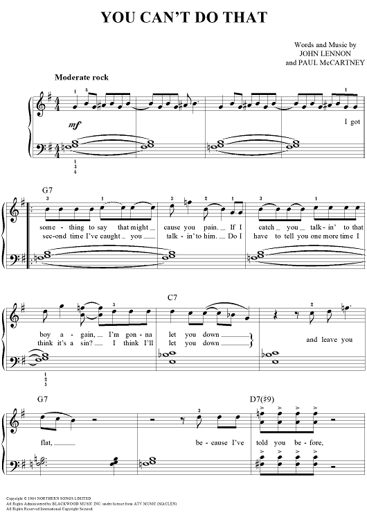 Digital Sheet Music for You Can't Do That by Paul McCartney, The Beatles, John Lennon scored for Easy Piano/Vocal/Chords; id:452029