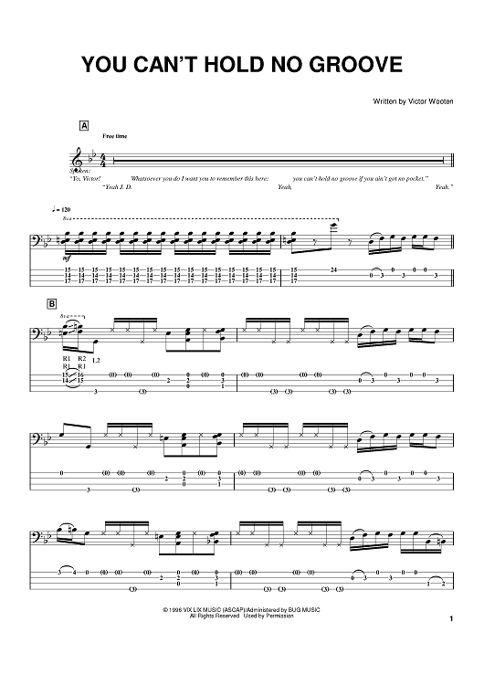 "You Can't Hold No Groove" Sheet Music by Victor Wooten