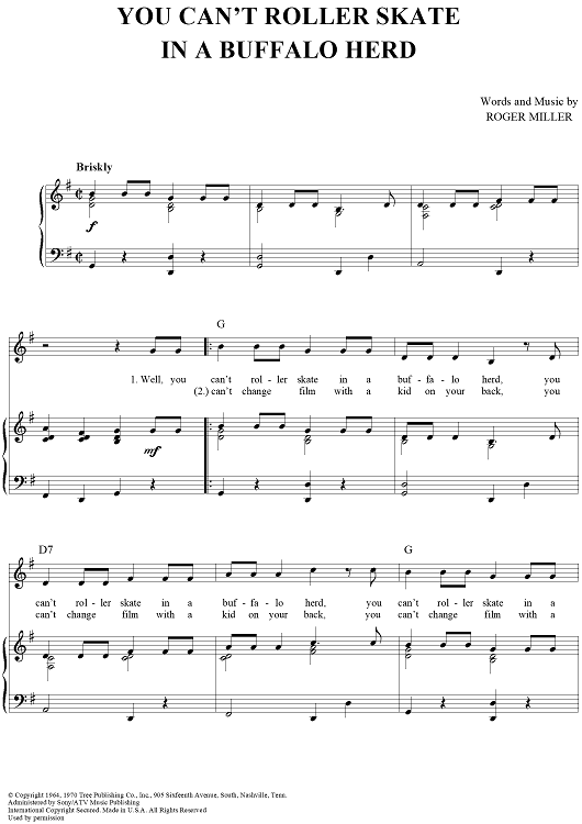 Digital Sheet Music for You Can't Roller Skate in a Buffalo Herd by Roger Miller scored for Piano/Vocal/Chords; id:362768