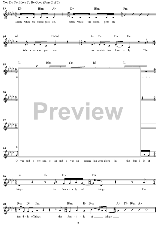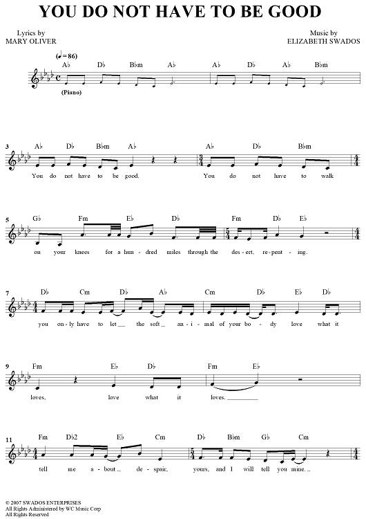 Digital Sheet Music for You Do Not Have To Be Good by Elizabeth Swados, Kris Kukul, Mary Oliver scored for Lead Sheet; id:469459