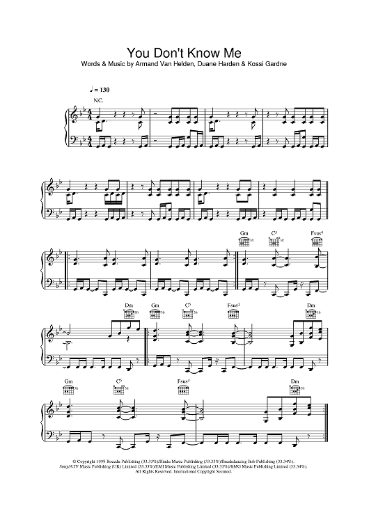 Digital Sheet Music for You Don't Know Me by Kossi Gardner, Duane Harden, Armand Van Helden scored for Piano/Vocal/Chords; id:387846