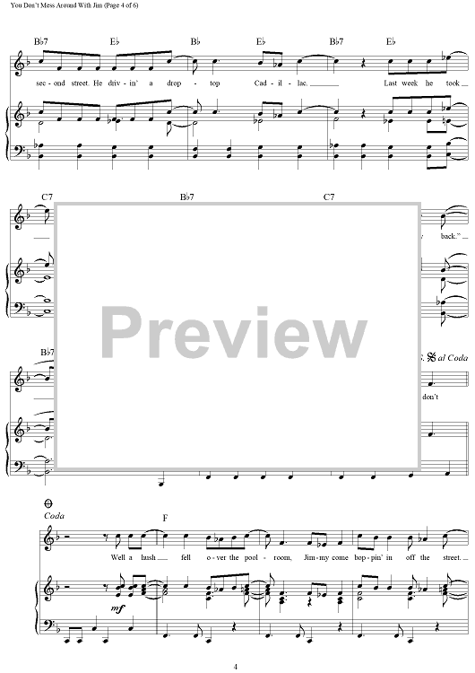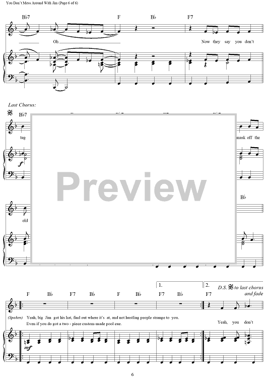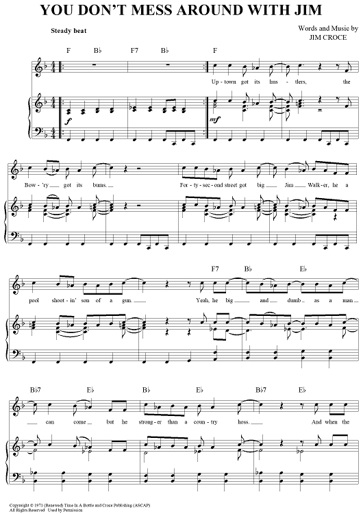 Digital Sheet Music for You Don't Mess Around With Jim by Jim Croce scored for Piano/Vocal/Chords; id:272077