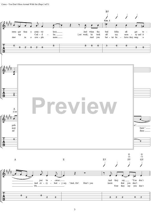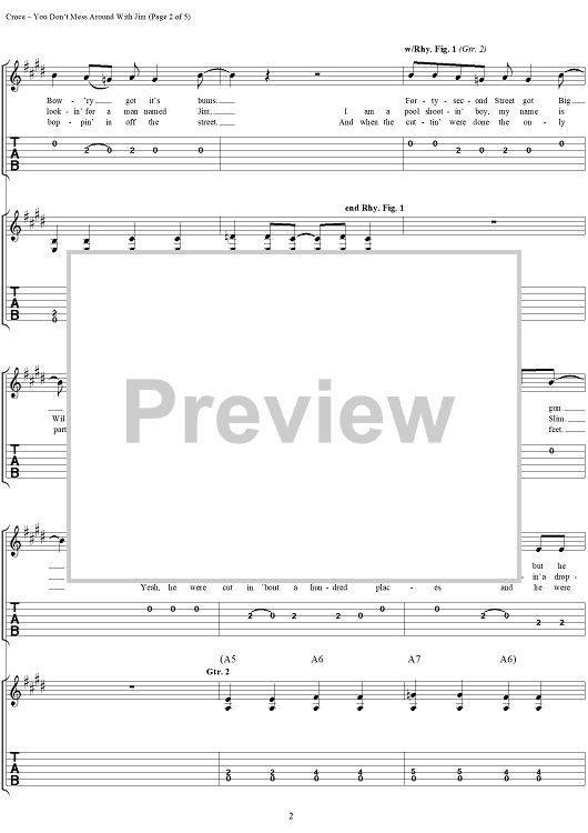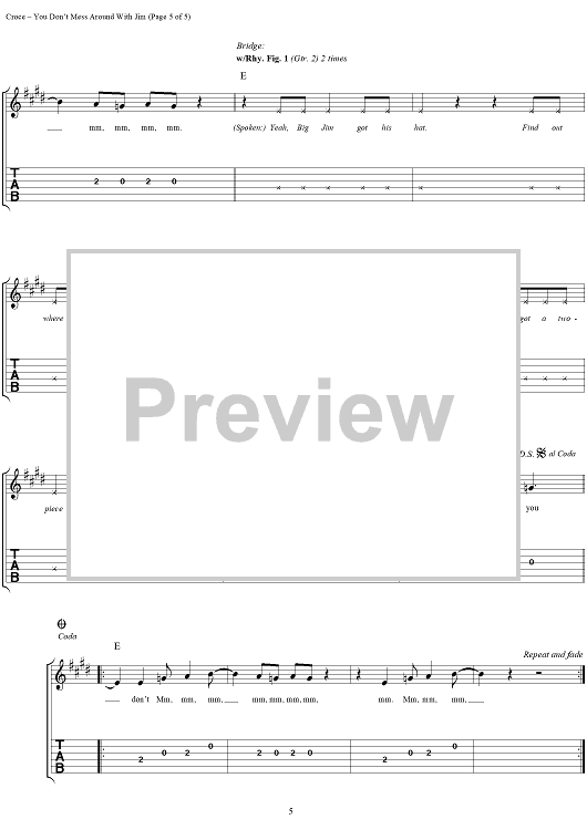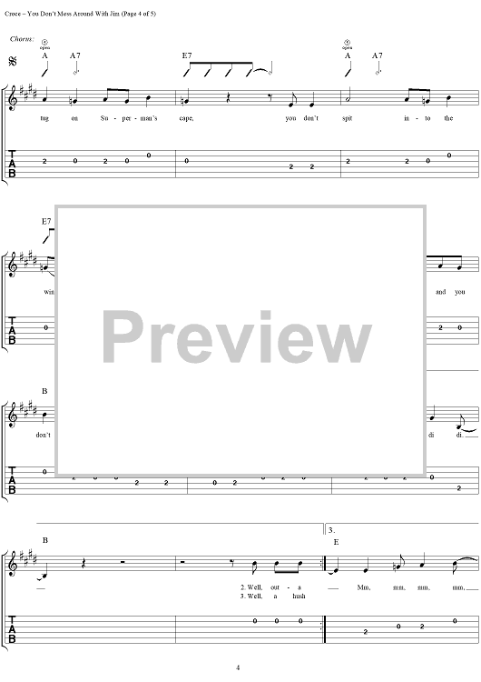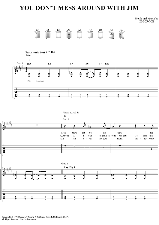 "You Don't Mess Around With Jim" Sheet Music by Jim Croce