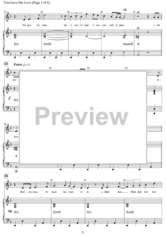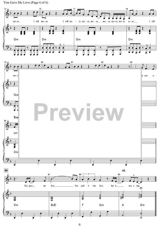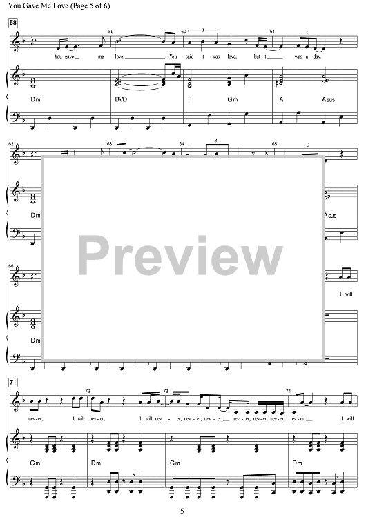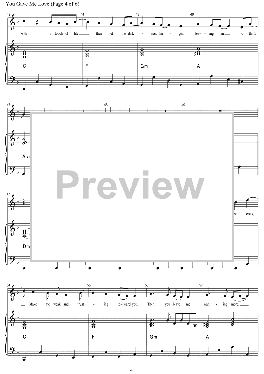Digital Sheet Music for You Gave Me Love by Elizabeth Swados, Kris Kukul scored for Piano/Vocal/Chords; id:469460