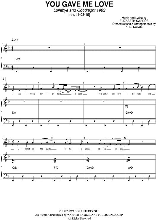 "You Gave Me Love" Sheet Music by Elizabeth Swados