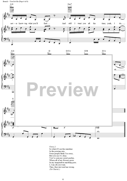 Digital Sheet Music for You Get Me by Abra Moore, John Shanks, Shelly Peiken, Michelle Branch scored for Piano/Vocal/Chords; id:305281