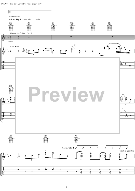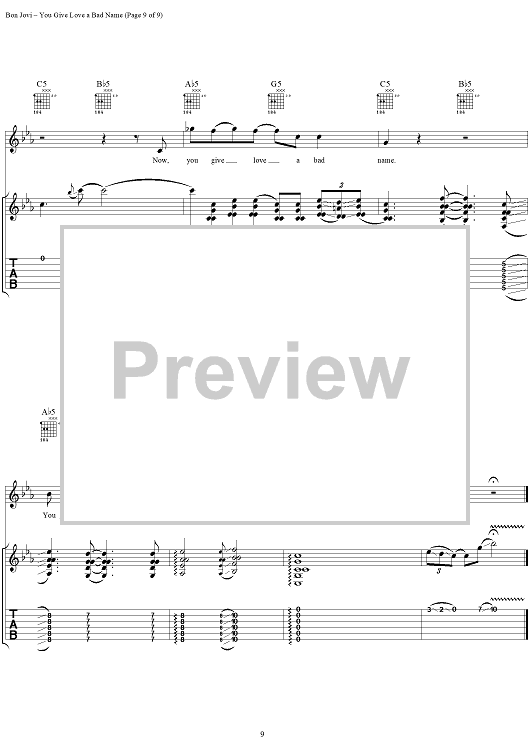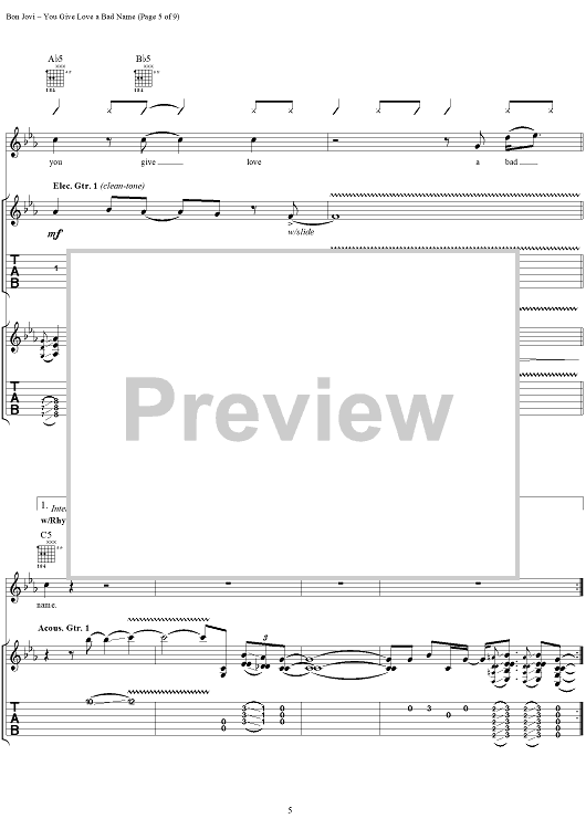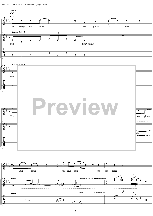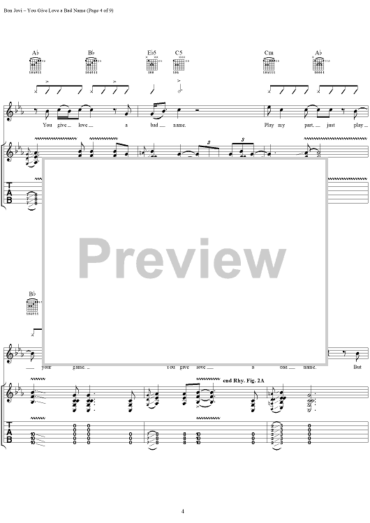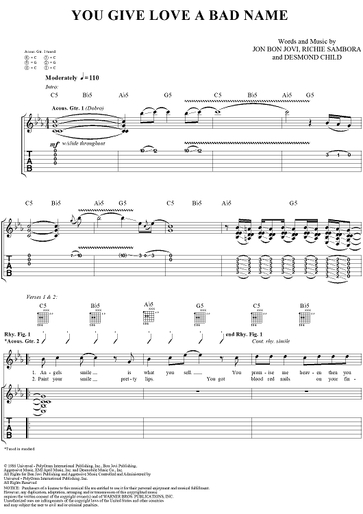 "You Give Love a Bad Name (Acoustic)" Sheet Music by Bon Jovi
