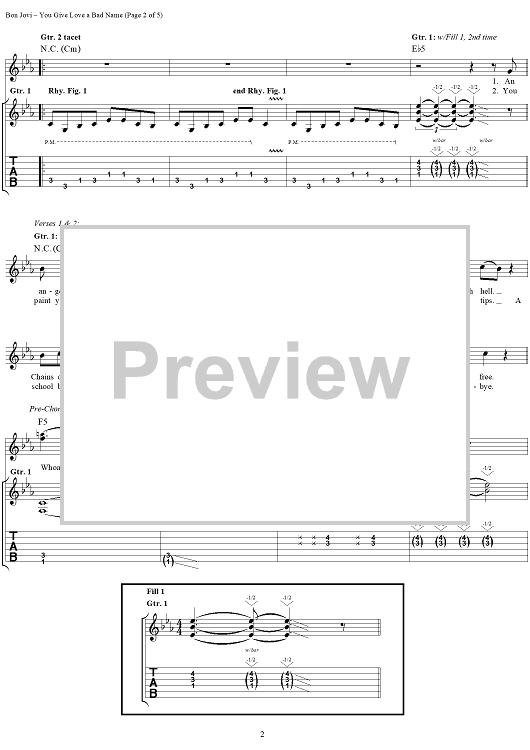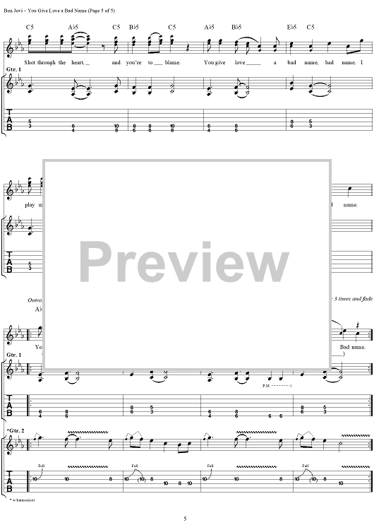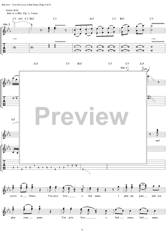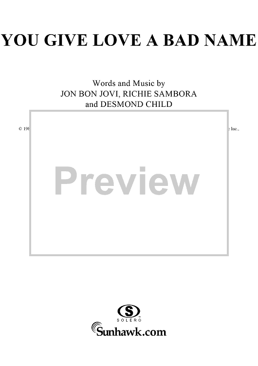 "You Give Love a Bad Name" Sheet Music by Bon Jovi