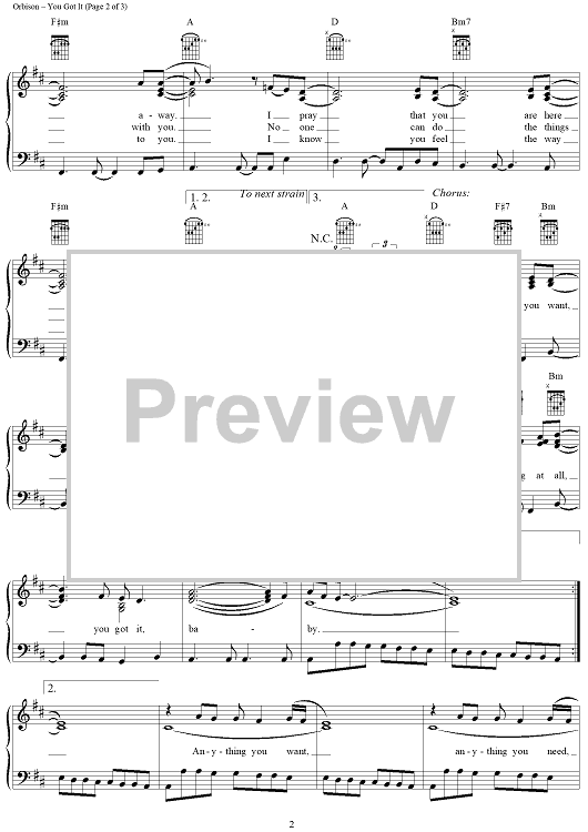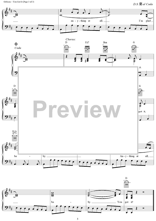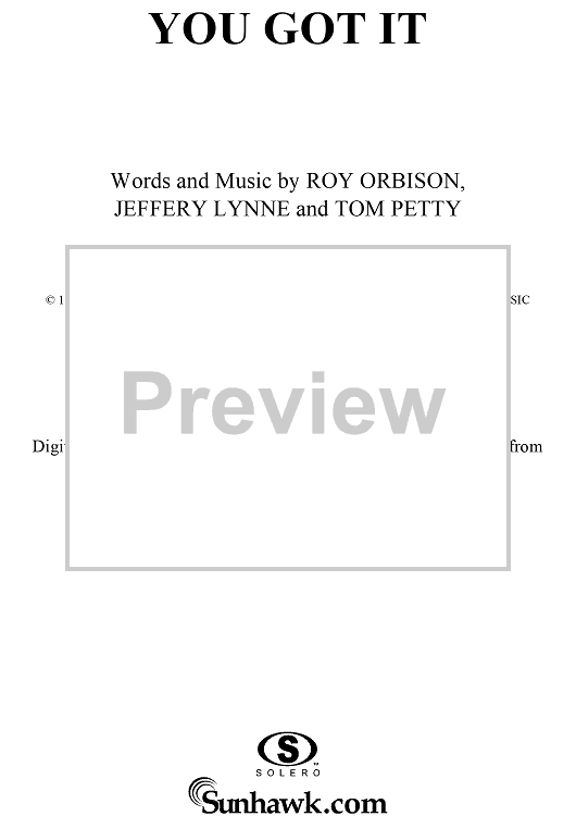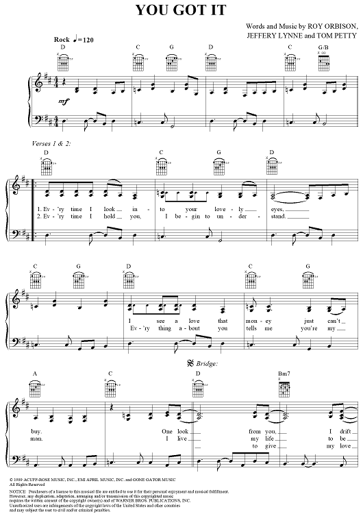 Digital Sheet Music for You Got It by Roy Orbison, Tom Petty, Jeff Lynne scored for Piano/Vocal/Chords; id:285522