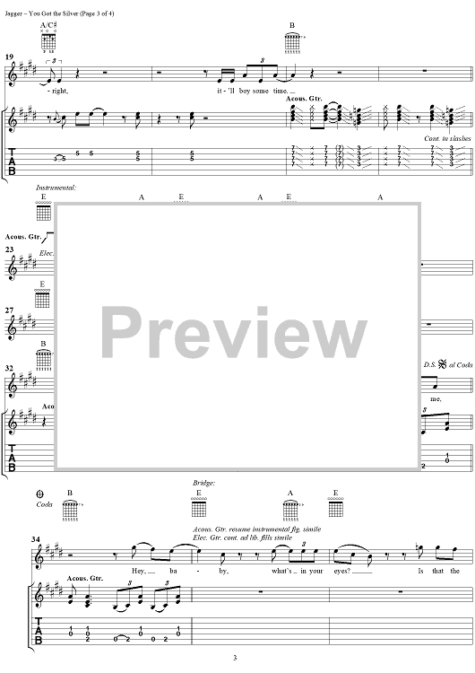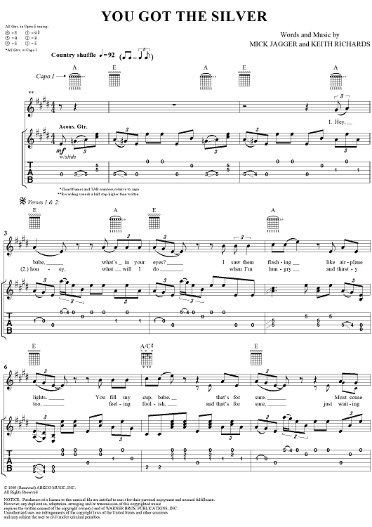 "You Got the Silver" Sheet Music by The Rolling Stones