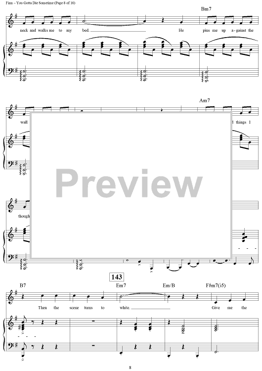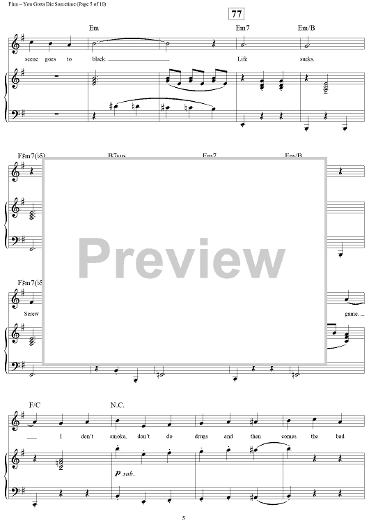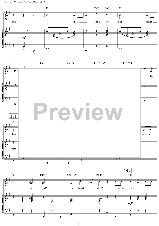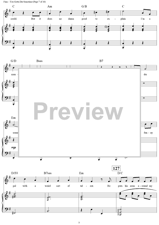 Digital Sheet Music for You Gotta Die Sometime by William Finn scored for Piano/Vocal/Chords; id:269781