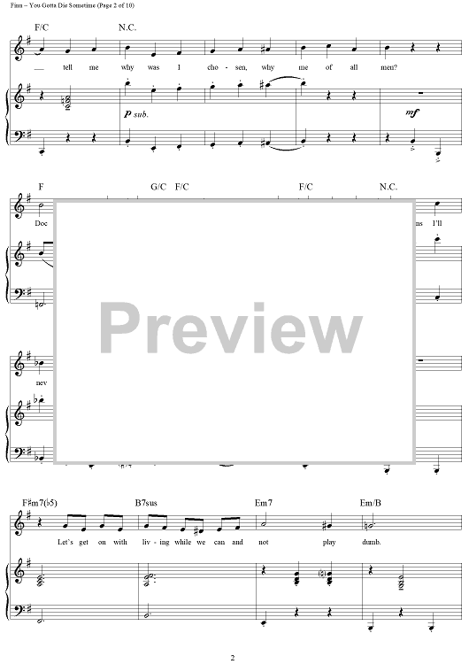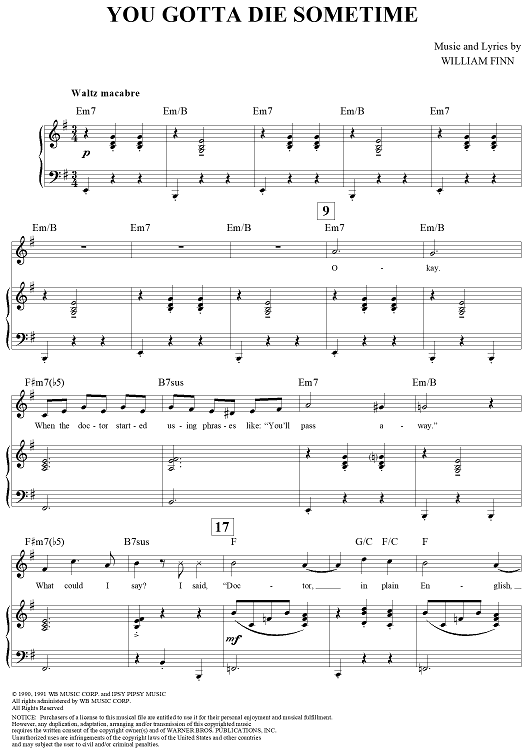 "You Gotta Die Sometime" Sheet Music by William Finn