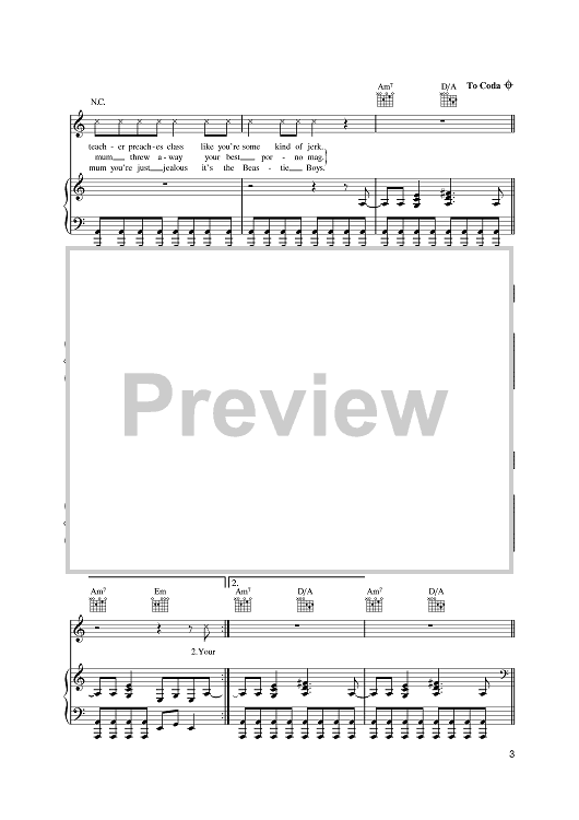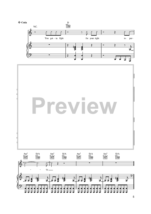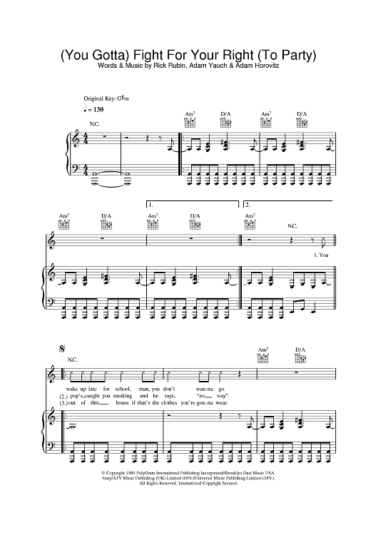 Digital Sheet Music for (You Gotta) Fight For Your Right (To Party) by King Adrock, MCA, Beastie Boys, Rick Rubin scored for Piano/Vocal/Chords; id:381662