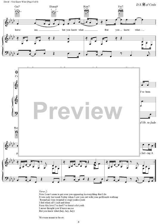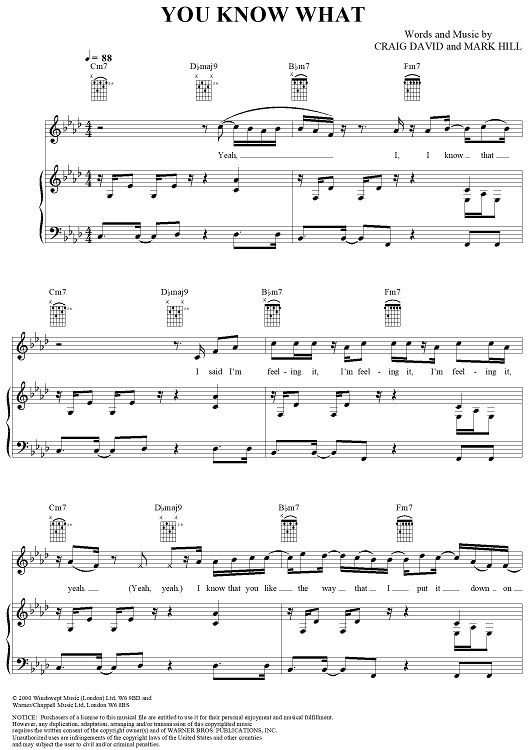 Digital Sheet Music for You Know What by Craig David, Mark Hill scored for Piano/Vocal/Chords; id:284949