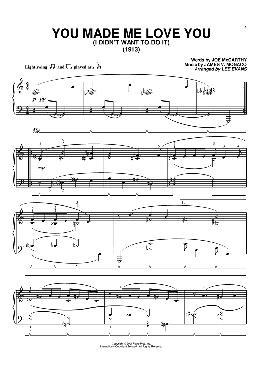 Digital Sheet Music for You Made Me Love You (I Didn't Want To Do It) by James V. Monaco, Joe McCarthy scored for Piano; id:374381