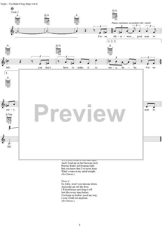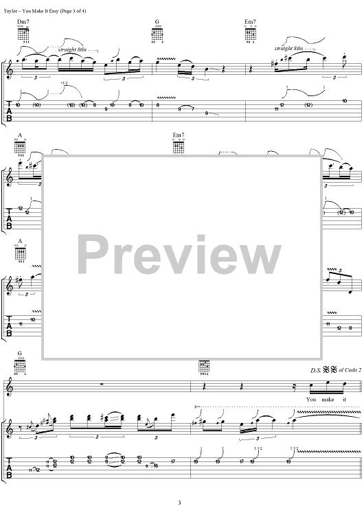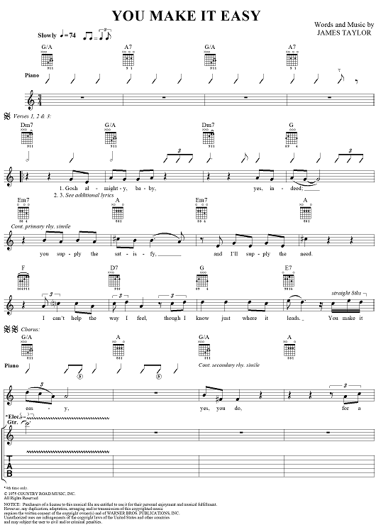 Digital Sheet Music for You Make It Easy by James Taylor scored for Guitar Tab/Vocal; id:285506
