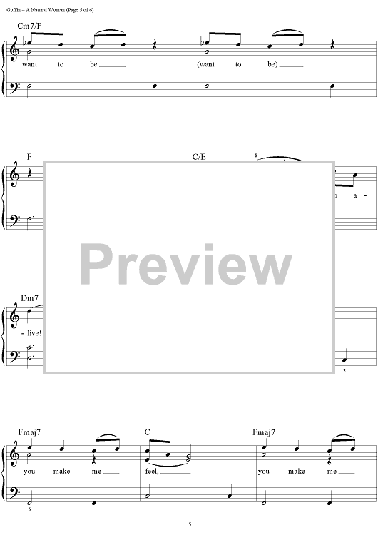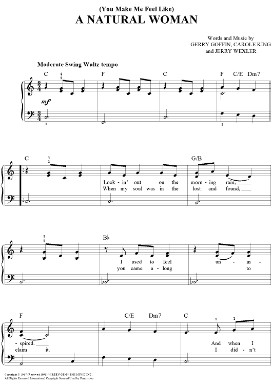 Digital Sheet Music for (You Make Me Feel Like) A Natural Woman by Celine Dion, Carole King, Mary J. Blige, Gerry Goffin, Jerry Wexler, Aretha Franklin scored for Easy Piano/Vocal/Chords; id:444936