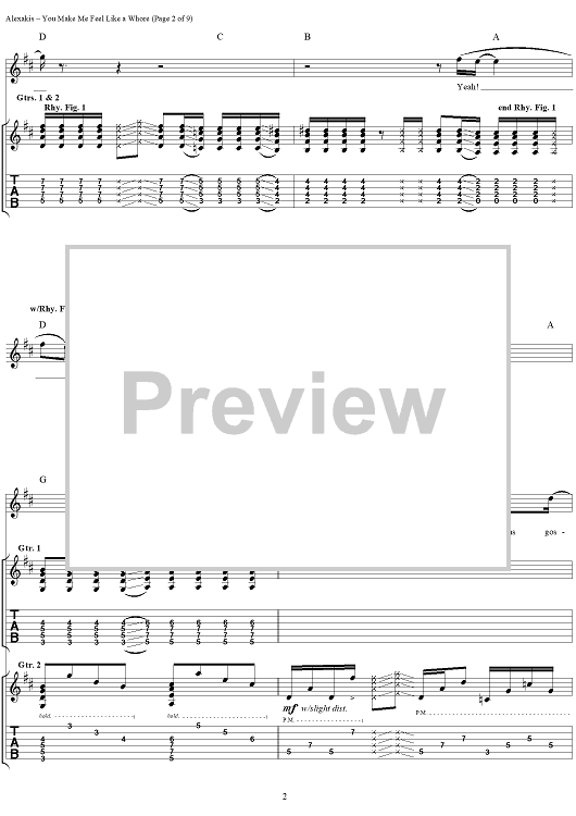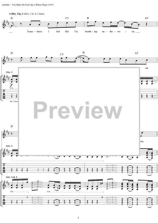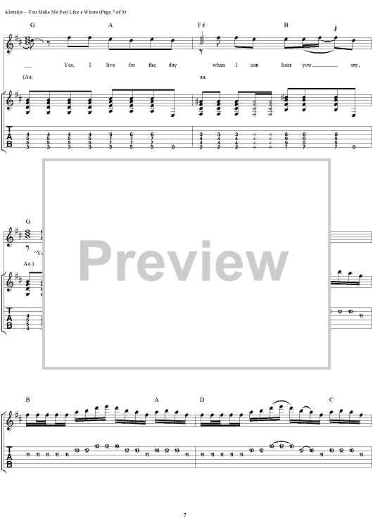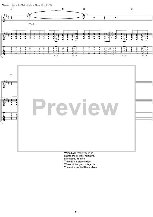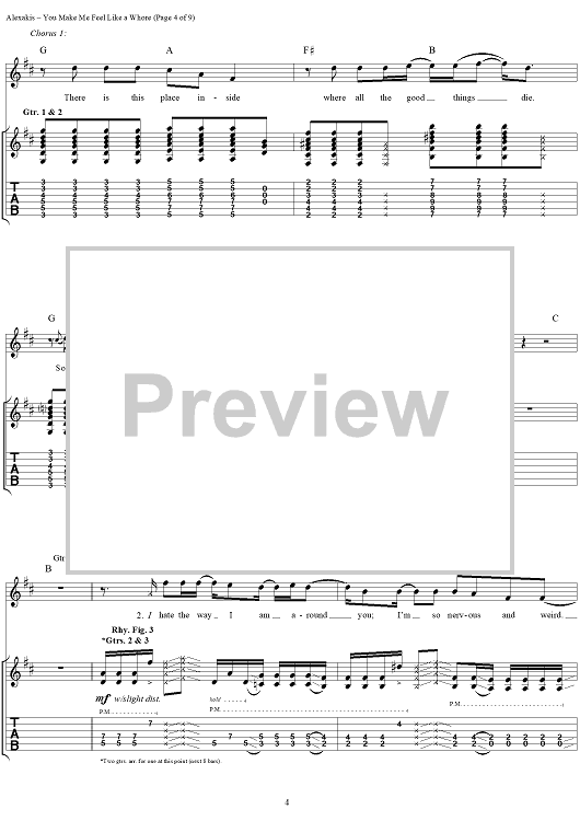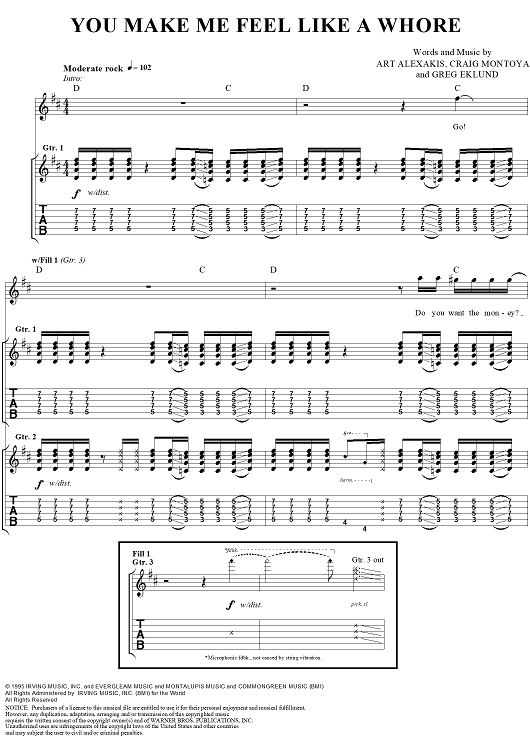 Digital Sheet Music for You Make Me Feel Like a Whore by Everclear, Art Alexakis, Craig Montoya, Greg Eklund scored for Guitar Tab/Vocal; id:277443
