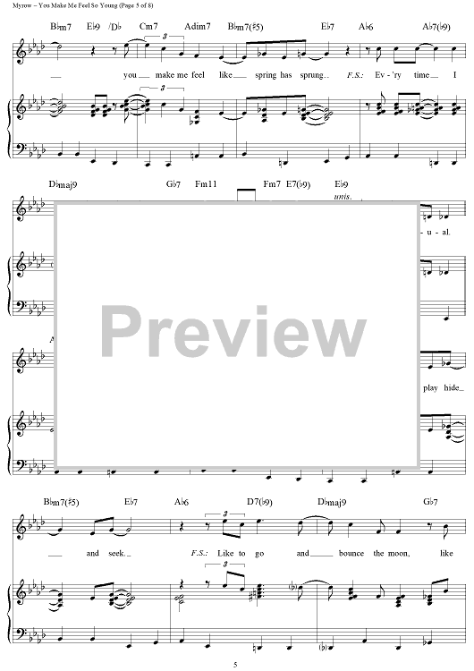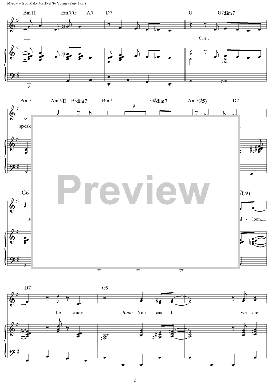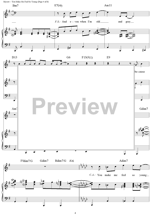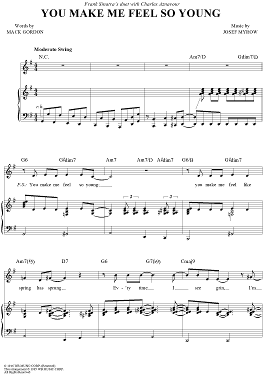 Digital Sheet Music for You Make Me Feel So Young by Frank Sinatra, Mack Gordon, Josef Myrow, Charles Aznavour scored for Piano/Vocal/Chords; id:112843