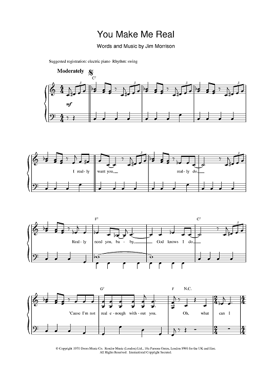 Digital Sheet Music for You Make Me Real by The Doors scored for Piano/Vocal/Chords; id:378768