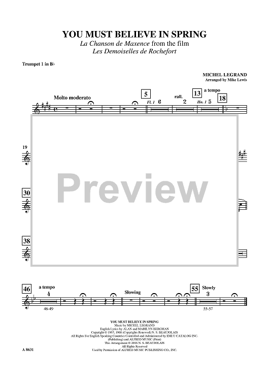 "You Must Believe in Spring - Bb Trumpet 1" Sheet Music by Michel LeGrand