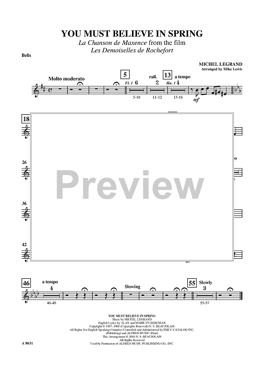 "You Must Believe in Spring - Bells" Sheet Music by Michel LeGrand