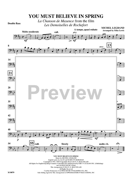 Digital Sheet Music for You Must Believe In Spring - Double Bass by Michel LeGrand, Mike Lewis scored for String Orchestra; id:459449