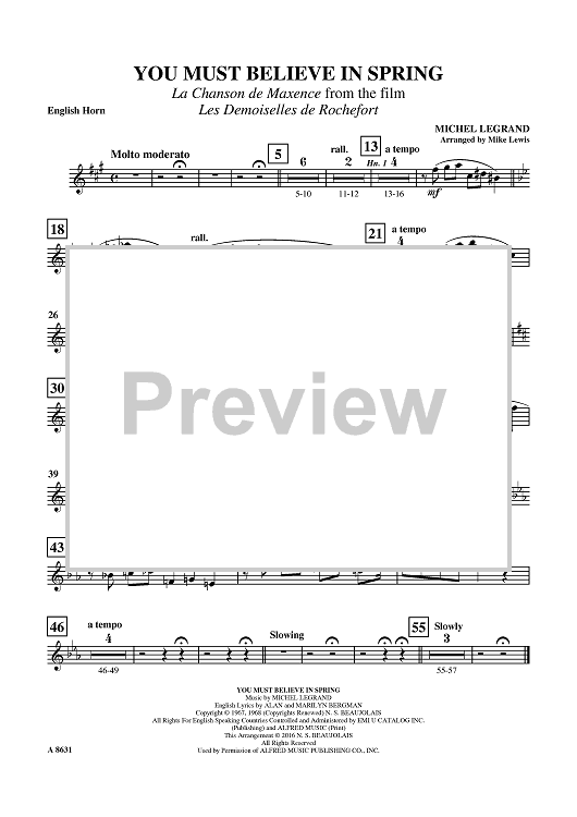 "You Must Believe in Spring - English Horn" Sheet Music by Michel LeGrand